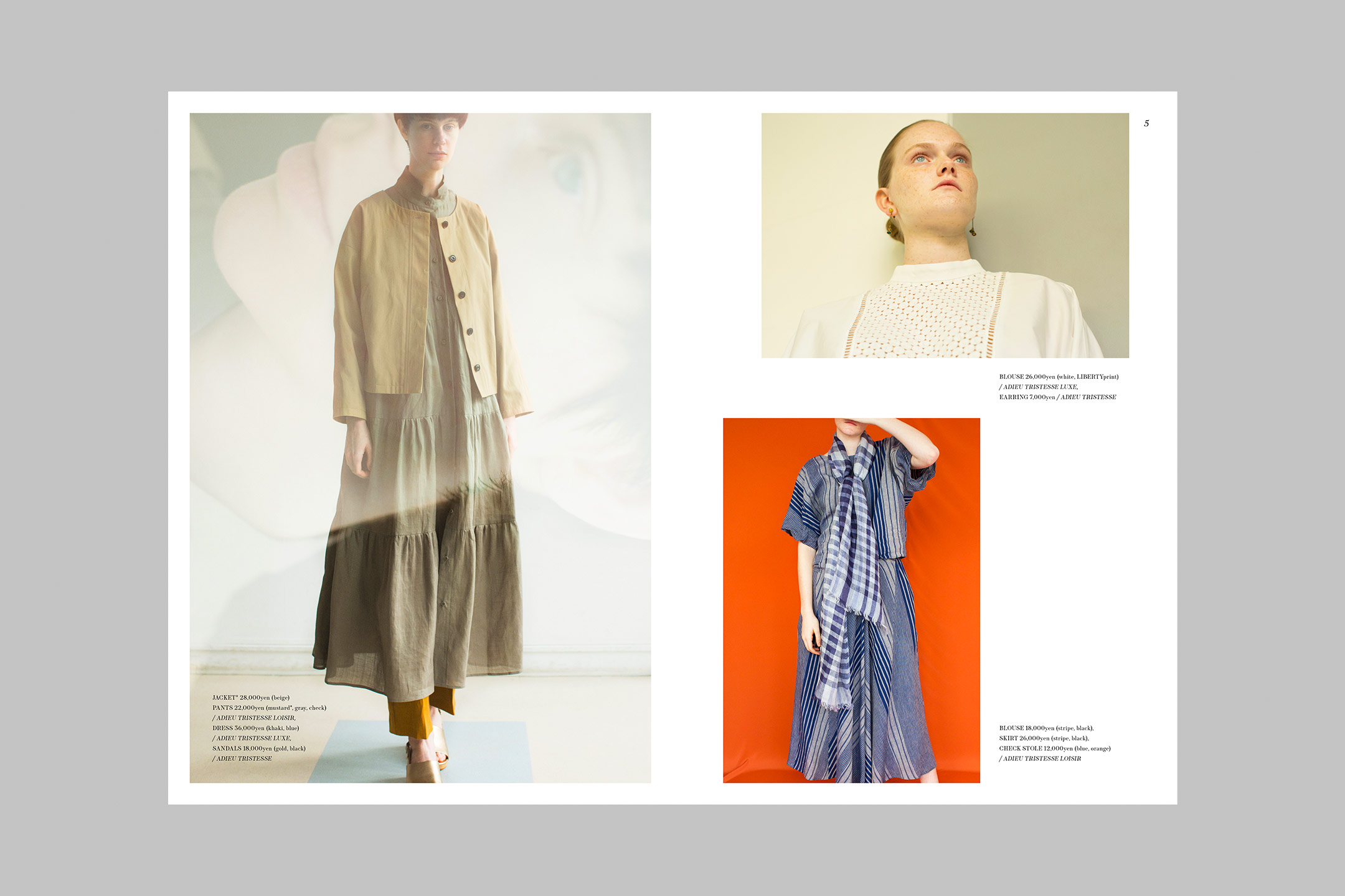 Art Director, Designer: Naoki Tsuji, Photographer: Sophie Isogai, Stylist: Tomoko Kojima, Hair & Make-up: Takae Kamikawa