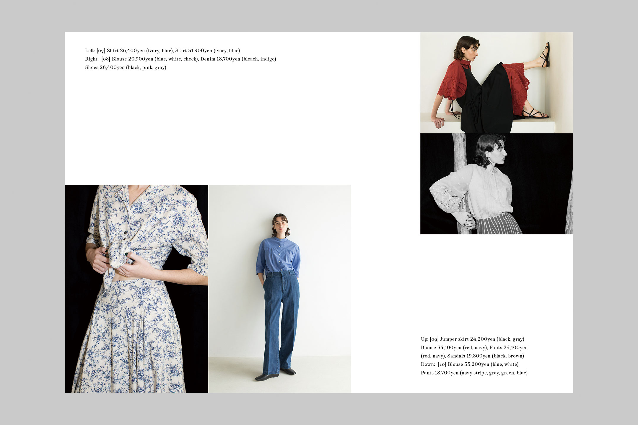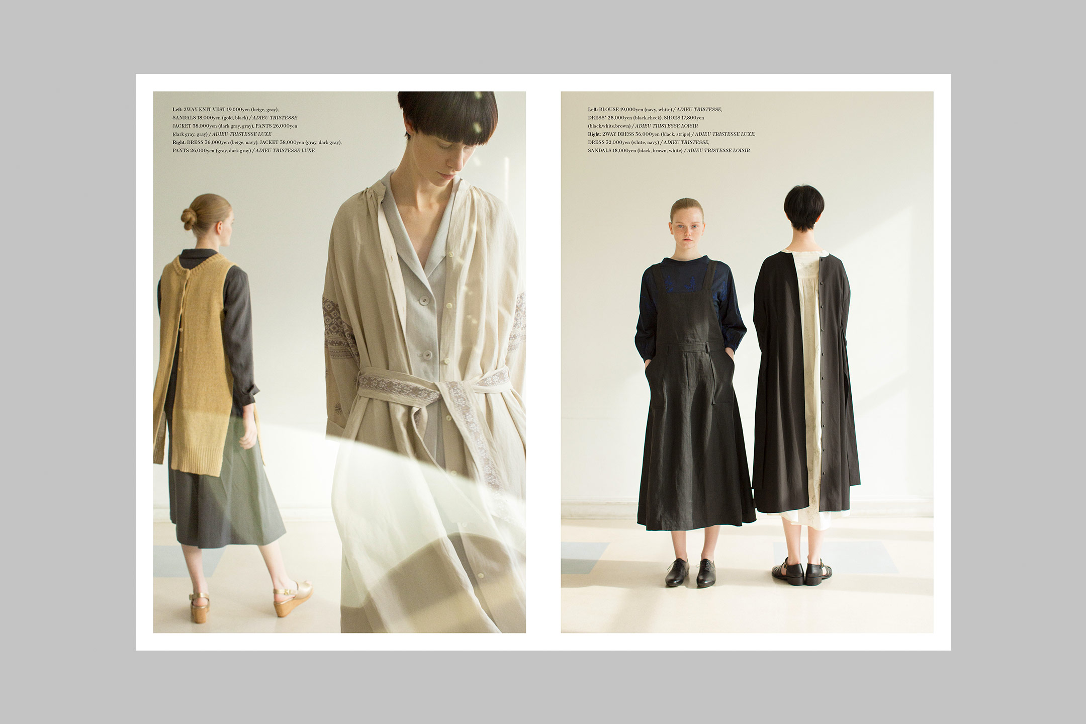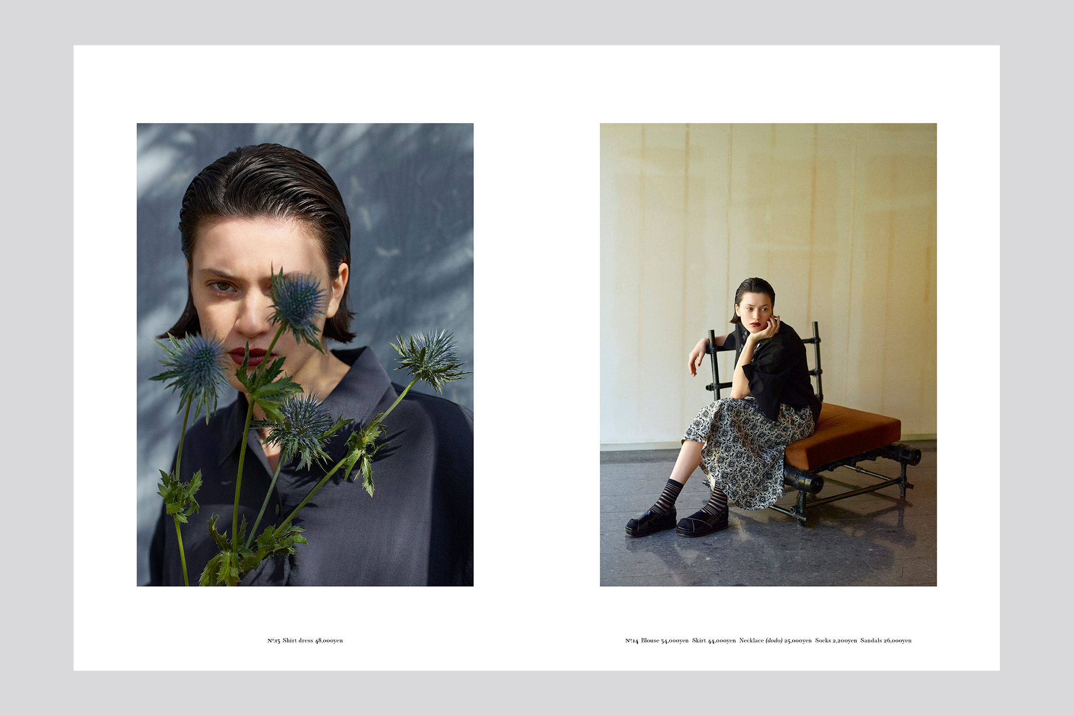 Art Director, Designer: Naoki Tsuji, Photographer: Shinsaku Kato, Stylist: Setsuko Todoroki, Hair & Make-up: Taeko Kusaba