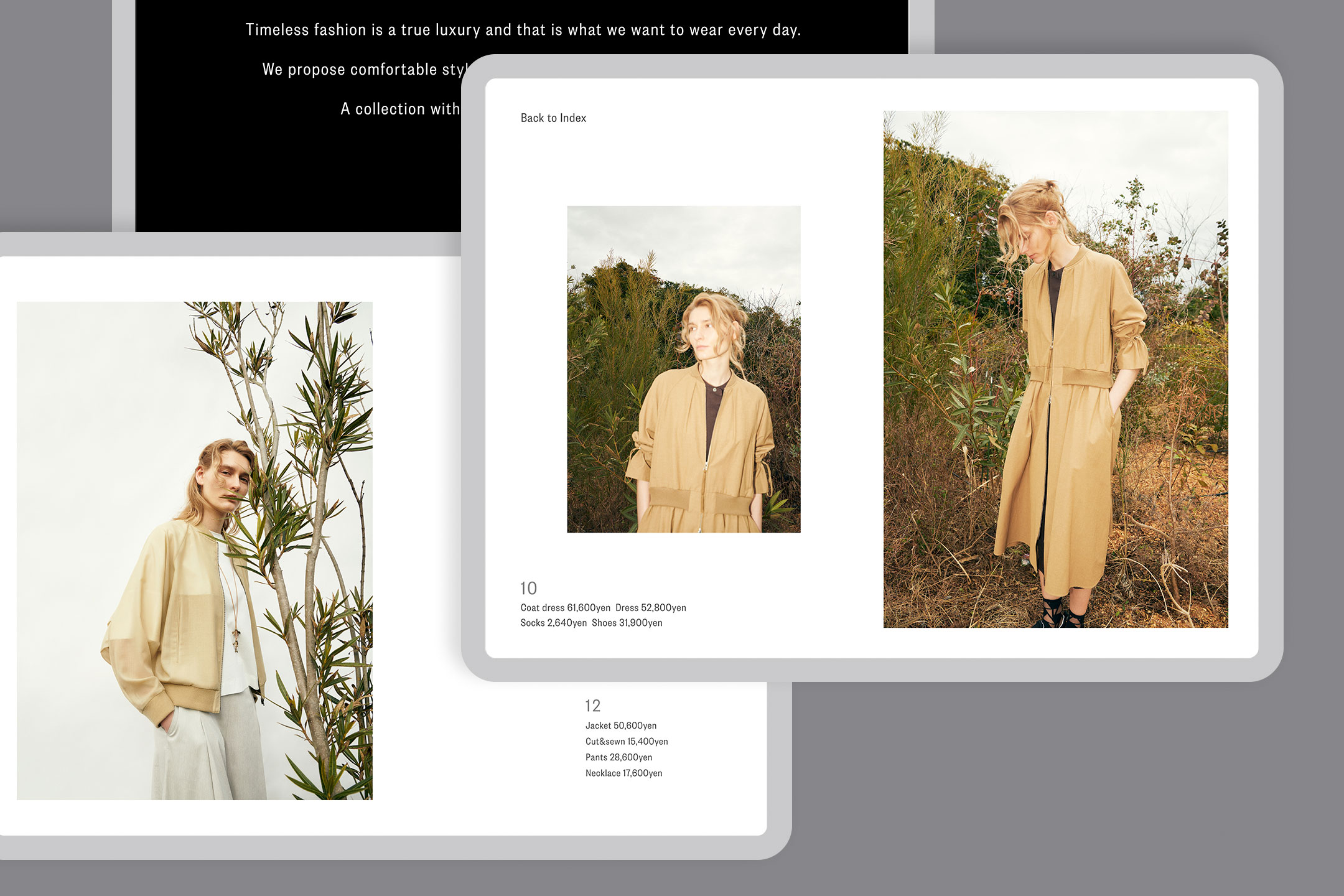 Art Director, Designer: Naoki Tsuji, Photographer: Kentaro Watanabe, Stylist: Kayoko Murayama, Copy Writer: Akiko Suzuki, Producer: ants-agent