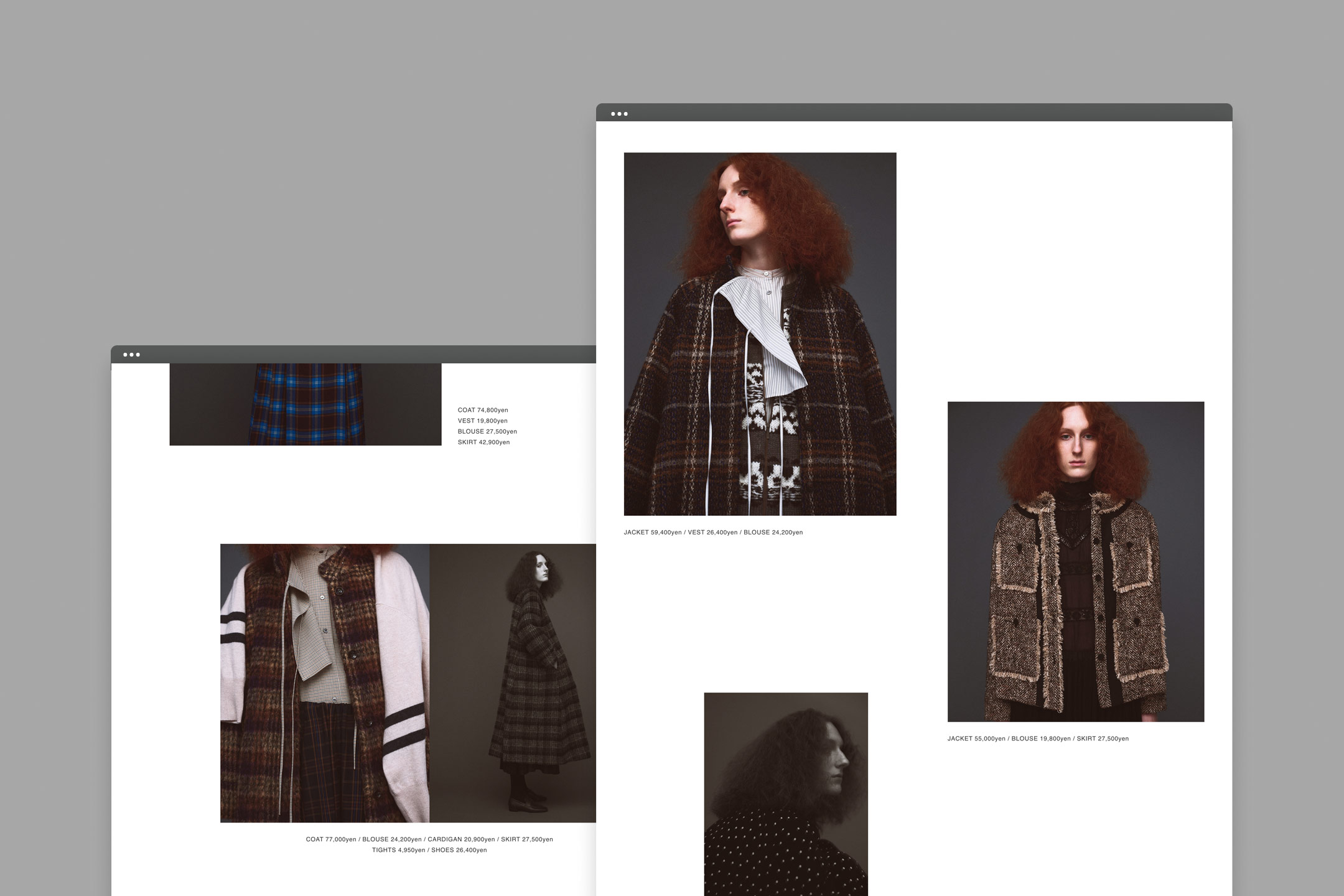 Art Director, Designer: Naoki Tsuji, Photographer: Jun Yasui, Stylist: Natsuko Kanneko, Hair: Hori, Make-up: Nobuko Maekawa